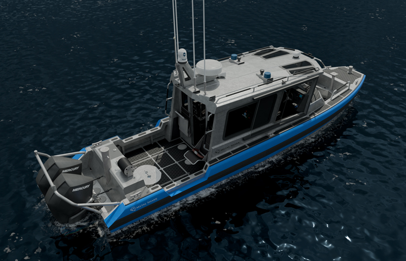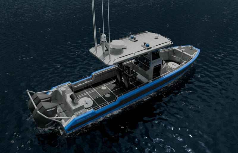 The Metal Shark 29 Fearless is a durable welded-aluminum high performance craft featuring a twin-stepped SVVT  hull design by renowned naval architect Michael Peters. Agile and maneuverable, yet tough enough to withstand the harshest environments imaginable, Metal Shark’s Fearless models have been extensively proven in service with law enforcement agencies from coast to coast, and militaries worldwide. The 29 Fearless is offered in center console and walkaround cabin variants, as shown below.