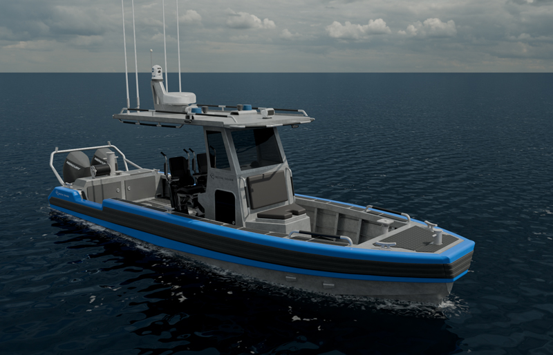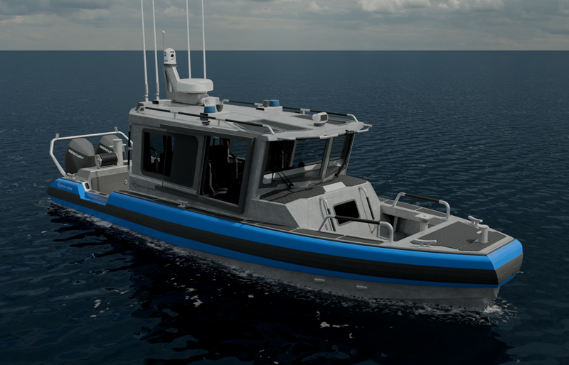 The 29 Fearless may be configured in a Walkaround Cabin layout enabling comfortable and safe all-weather operation. Wide port and starboard nonskid walkways and a flat cockpit floor running from bow to stern afford easy access to crews working the boat. The 29 Fearless pilothouse has been designed for optimum visibility and crew comfort. A reversed-raked windshield with prominent brow shade reduces heat load and glare. An overhead skylight array provides an unobstructed upward view while operating alongside ships or elevated structures, or during helicopter hoisting operations. Large, quickly-sliding side windows and the extra-wide cabin door facilitate communication to crew members in the cockpit and allow quick and easy ingress/egress while wearing full gear. The result is mission-enhancing visibility and access throughout the complete range of patrol and SAR scenarios.The 29 Fearless’s open bow is quickly accessed via a large sliding forward cabin door. Integrated port and starboard dive reliefs accommodate the vessel’s three-step removable dive ladder to facilitate boarding and recovery operations.